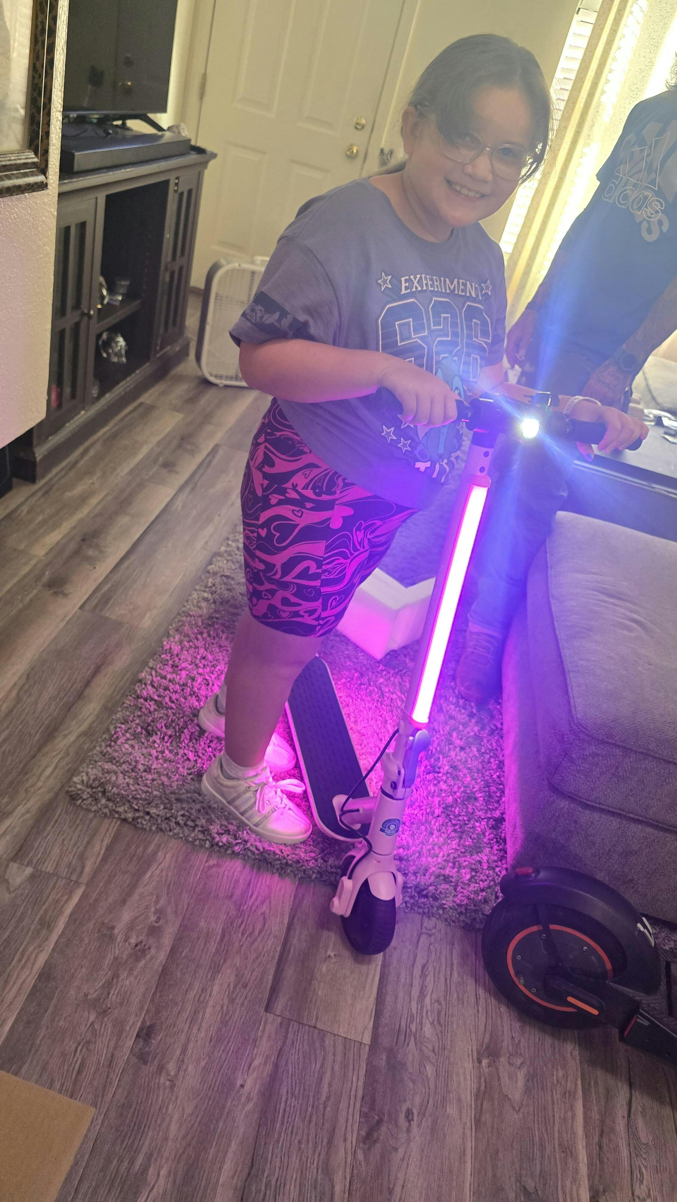 All the geometric design frames, components, and accessories arecombined to a simple, elegant, and beautiful e-scooter. The colorfuland suitable size is perfect as a Birthday or Christmas surprise for cute kids.