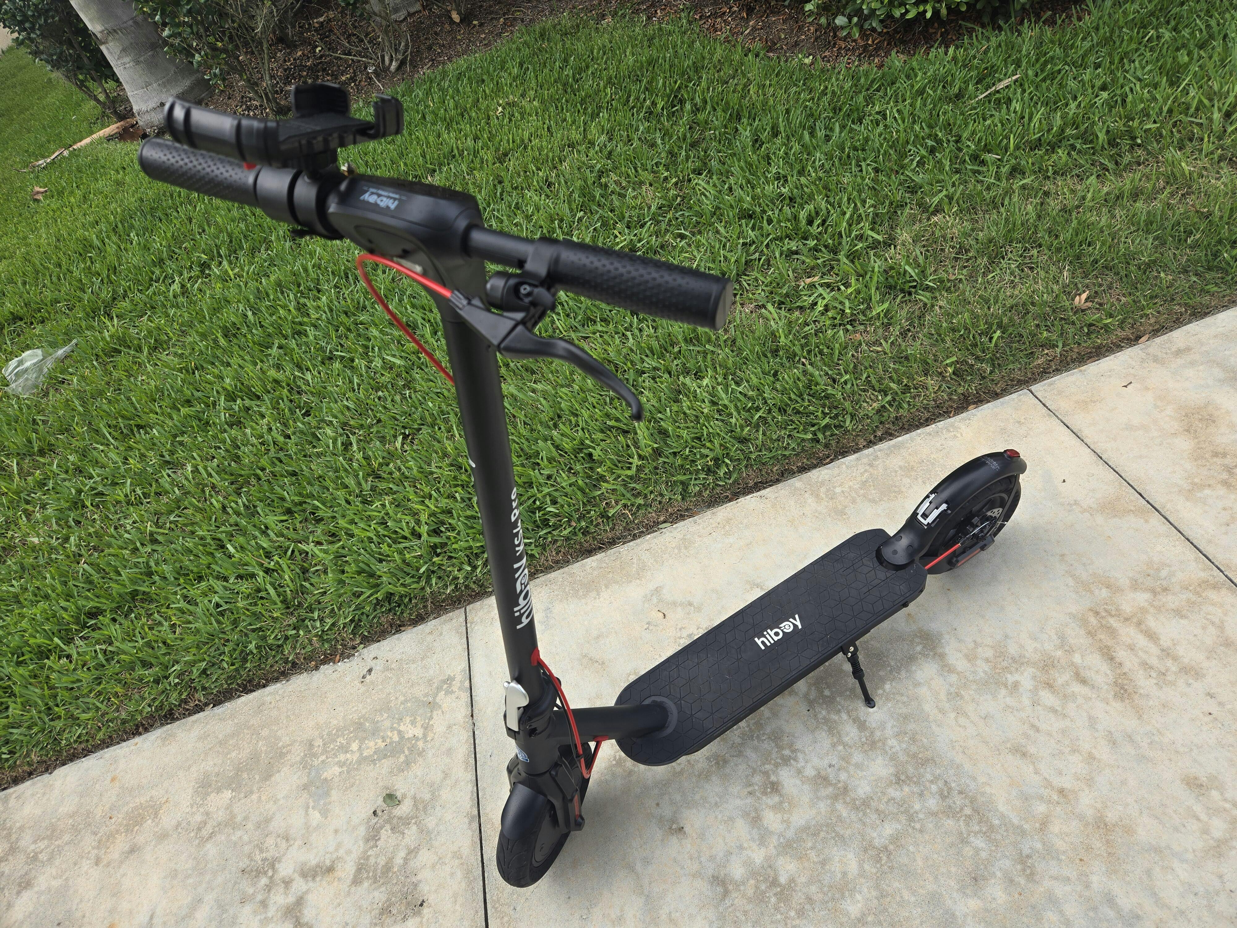 Riding safe at night with the taillights, headlights and sidelights on the Hiboy scooter.
